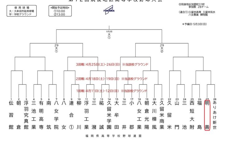 筑後地区大会組み合わせ⚾