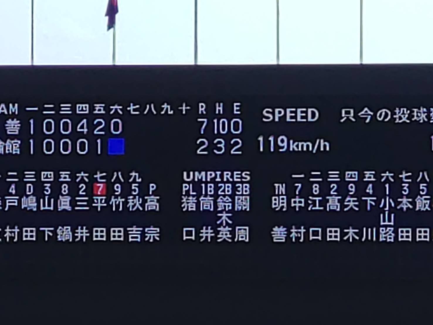 DH解除の選手変更で慣れない審判団もやや戸惑い気味の様子でした。
