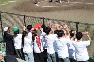 3月に卒業した3年生部員13名全員が応援にかけつけ、