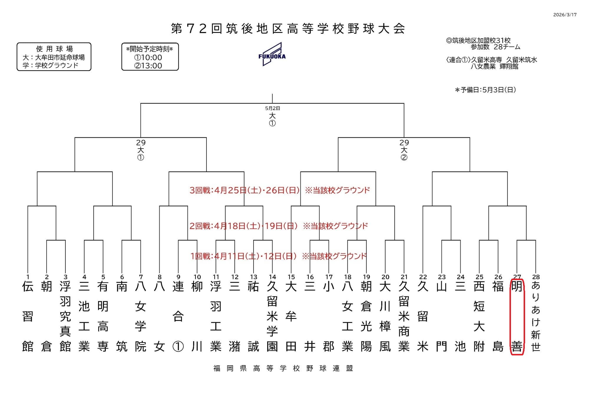 筑後地区大会組み合わせ⚾